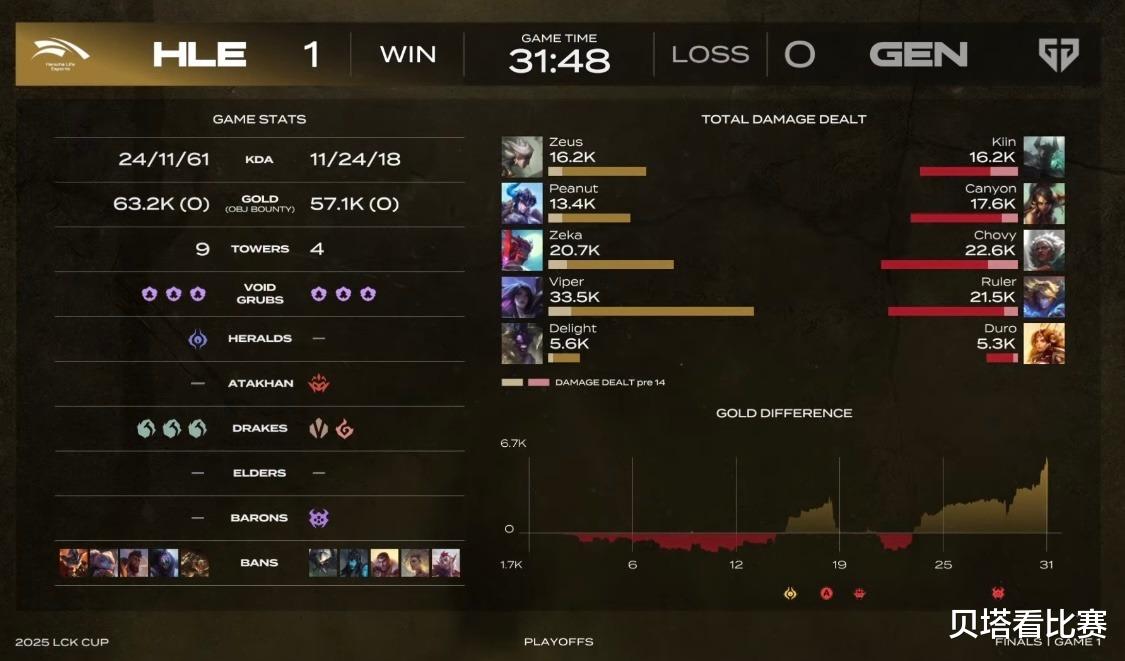 LCK杯GEN和HLE的总决赛,双方打满5局之后,HLE以3-2的战绩击败GEN,拿下LCK杯的冠军,将参加先锋赛!