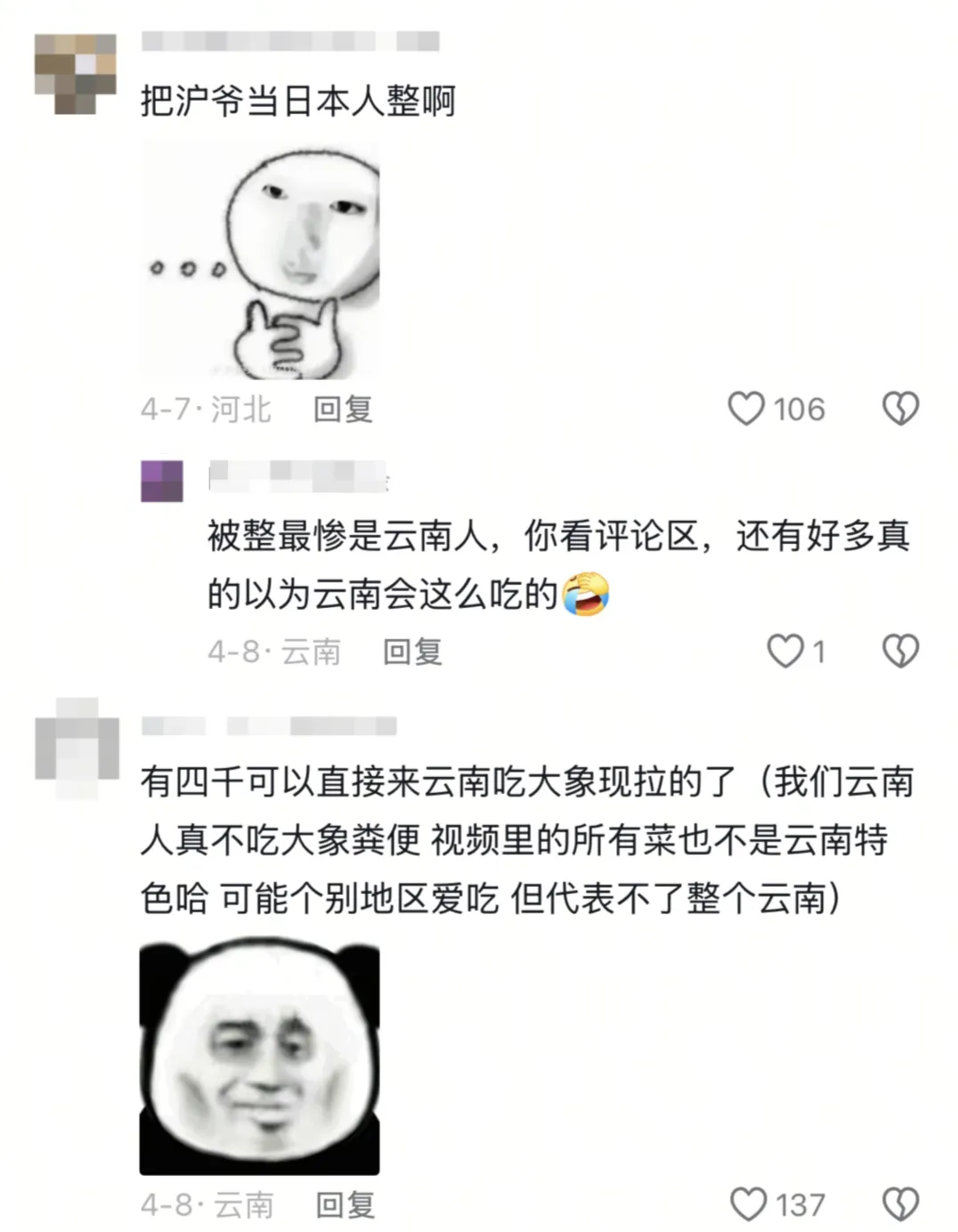 最惨的还是云南网友,纷纷出来辟谣“我们云南人真不吃大象粪便,视频里的所有菜也不是云南特色”。