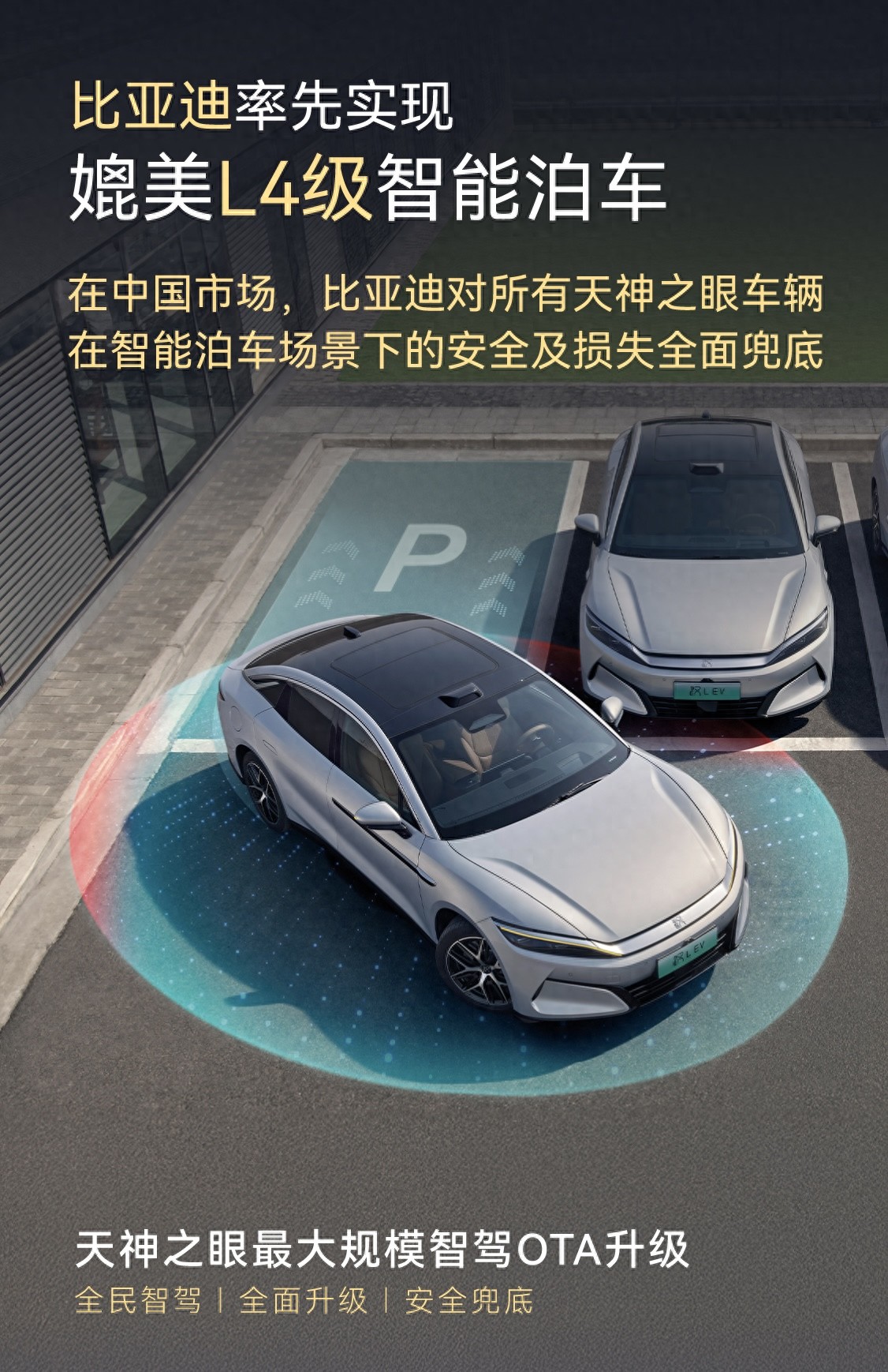 比亚迪之所以敢做出如此保证,是因为其强大的研发能力,仅仅过去五个多月,天神之眼智驾车型保有量超100万台,加上比亚迪有中国最大的车云数据库以及11万工程师团队,所以智能驾驶体验以指数级增长,这次OTA升级除了智能泊车,天神之眼A/B/C还会有其他方面的体验提升。