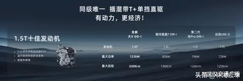 全新大V DD-i虎鲸搭载的启辰DD-i超混动2.0系统,以同级唯一“插混带T+单挡直驱”技术路线打破行业桎梏。其1.5T十佳发动机的最大功率为123kW,峰值扭矩为230N·m,动力输出近乎达到同级竞品两倍,解决传统插混车型“馈电肉、高速虚”的痛点。