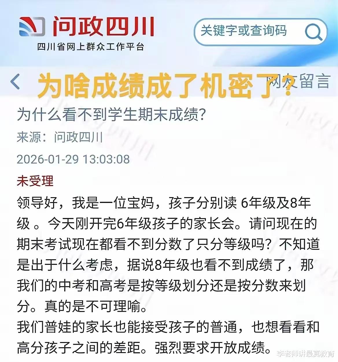 这些年因为家长的不断投诉,导致学校也不敢公布学生成绩和排名了,一般都是按等级展示。但没想到的是,近日有家长投诉,强烈要求开放成绩。