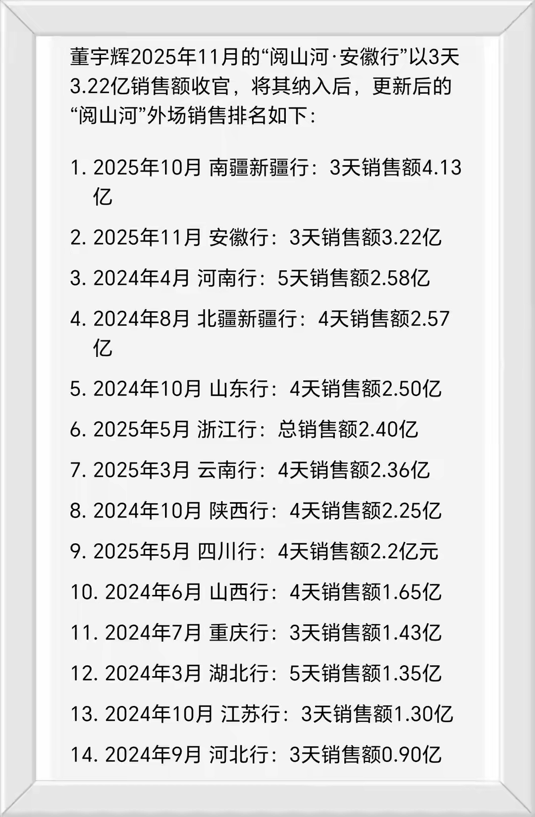 今天19号是本次福建行的最后一天,前两天已经累计交出了3.79亿的销售额,今天最后一天莆田站破亿肯定也不是问题,所以福建行应该将会以5亿左右的销售额收官,那将有望成为历次阅山河以来最高销售额的一场,可见这次福建行有多火爆!