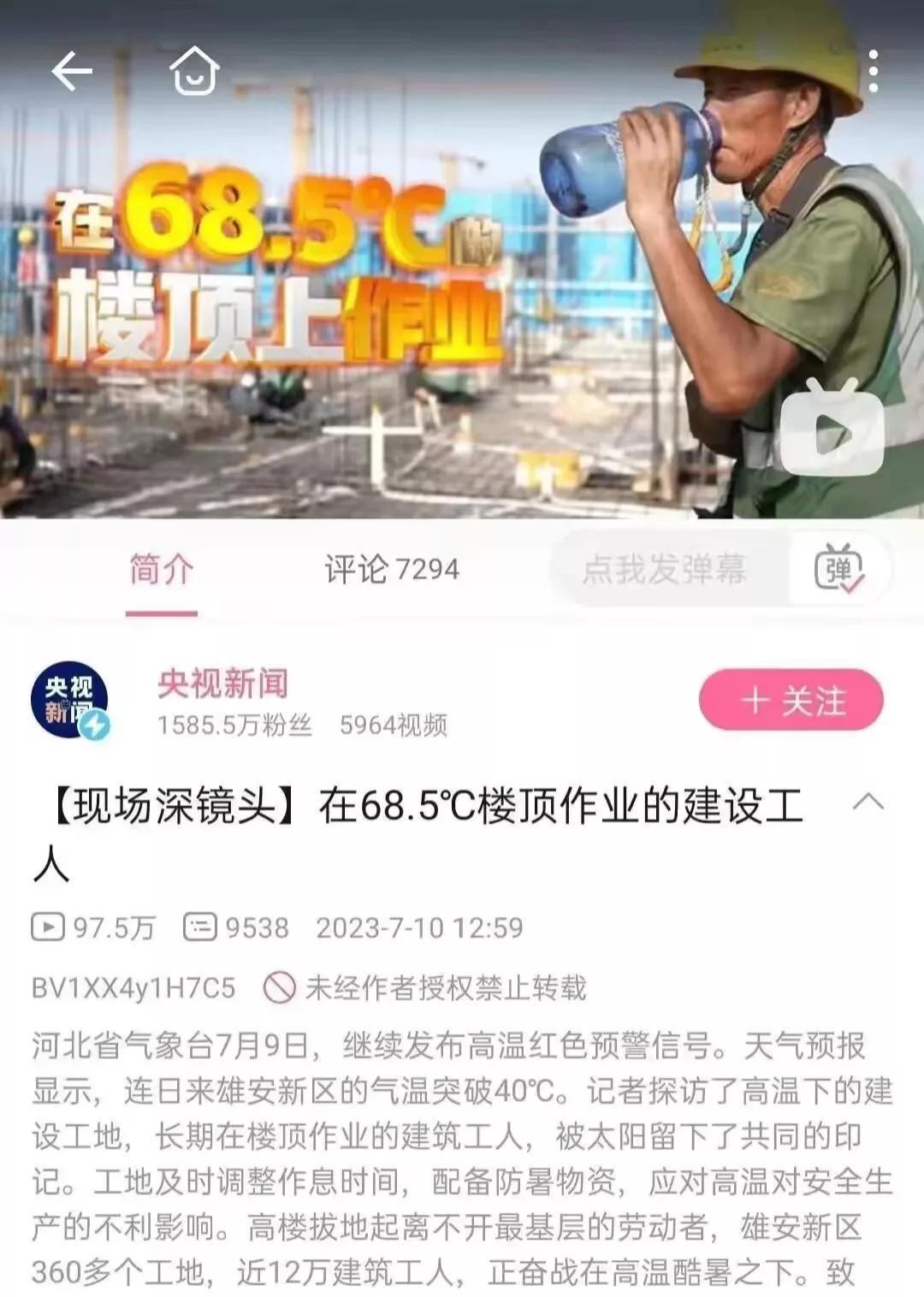 而作为国家中央官网平台在此之前曾发过赞扬高温条件下工作的文章,故而才被网友大批虚伪,央视这样官方的新闻媒体发称赞高温环境下工作者的消息,是否有引导的意味在里面大家不得而知。