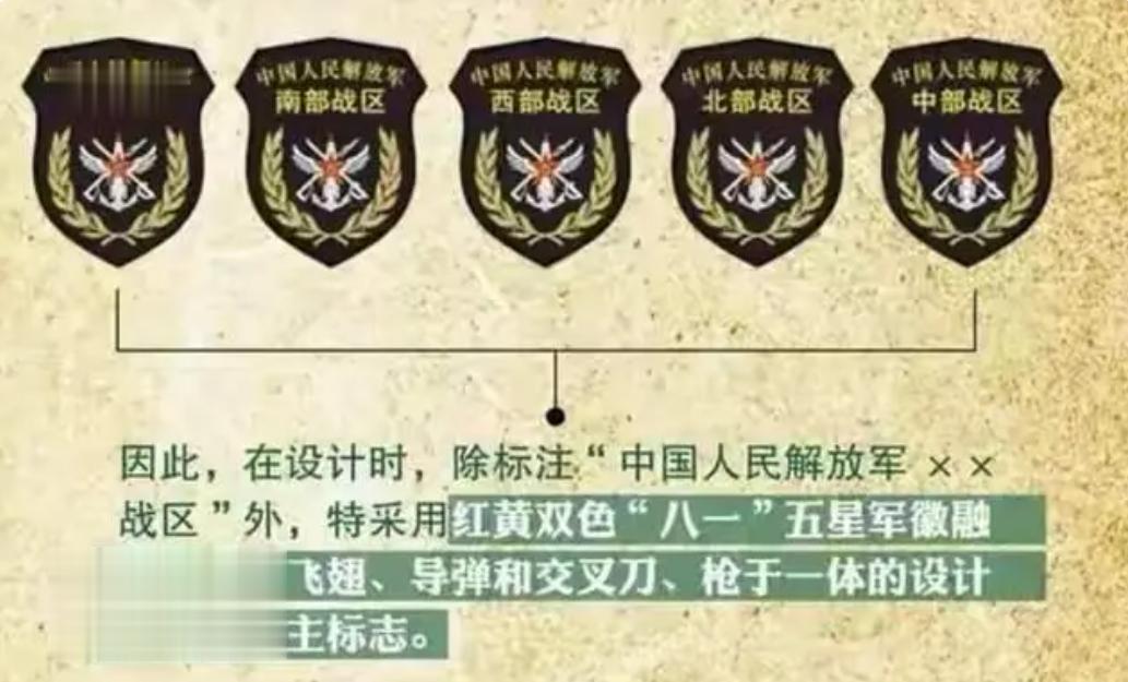 这一根本性变革,如何体现在一枚臂章上?答案就在主标志里。除标注“中国人民解放军××战区”外,其主标志采用了红黄双色“八一”五星军徽,并创新性地融合了铁锚、飞翅、导弹以及交叉的刀、枪等元素。这绝非简单堆砌,而是一套精密的视觉编码:刀,象征指挥权;枪、铁锚、飞翅、导弹则分别代表陆、海、空、火箭军四大军种。这些元素被有机整合于“八一”军徽之下,清晰寓意着——战区是在中央军委领导下,对诸军兵种实施联合指挥的机构。一个图案,便勾勒出“军委管总、战区主战、军种主建”的新格局。