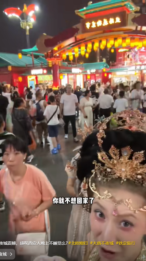 西安大唐不夜城,北欧媳妇现身说法:真的不建议在西安晚上出去,因为你一来就不想回家了。