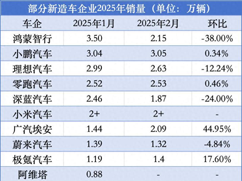 二月的新能源车市,就像一场没有硝烟的战场,各家车企交出的成绩单,有人欢喜有人忧。小鹏一路高歌猛进,连续四月交付破三万,坐上销冠宝座;而曾经的“销冠”鸿蒙智行却遭遇滑铁卢,销量环比大跌。这背后到底发生了什么?是新势力格局的重新洗牌,还是智能化浪潮的洗礼?今天,我们就来深入探讨一番。