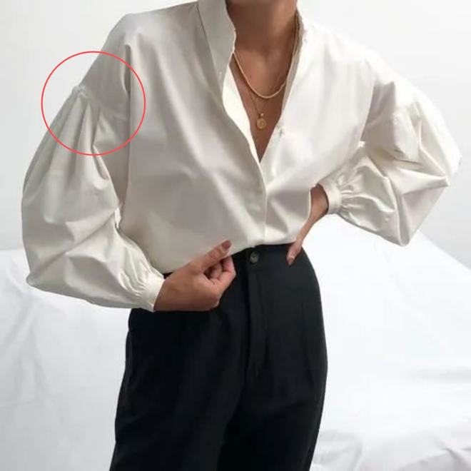 避免选择灯笼袖、泡泡袖类的衬衫,更不要选择肩线在肩膀太下面的衬衫,在视觉上会显得更壮喔~