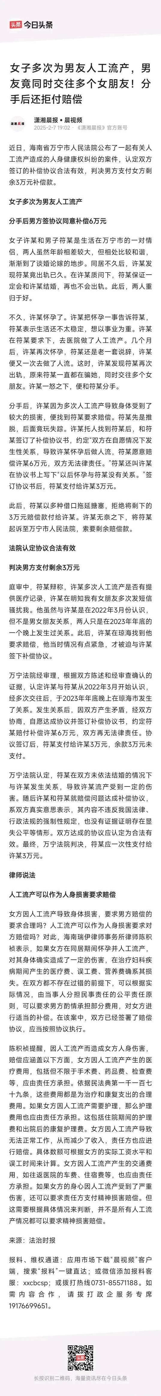 一个巴掌拍不响!海南万宁,一女子与男友虽然到了谈婚论嫁的地步,但是对方始终不表明态度,而她几次为男友人工流产,才发现对方背着她交往多个女朋友。中间双方签订过协议,男友承诺给她补偿,但是分手之后对方拒不认账,所以女子起诉至法院!