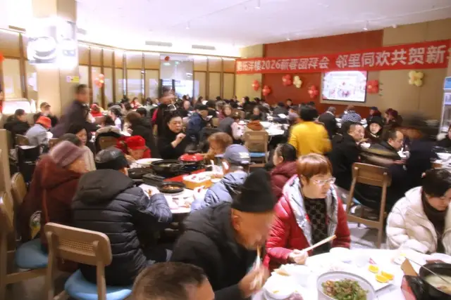 “5年团圆饭,吃出邻里情,我们小区的温暖新年。”2026年2月7日,农历腊月二十,四川省绵阳市涪城区城厢街道铁牛街社区勇拓洋楼小区里张灯结彩、笑语盈盈。在勇拓洋楼小区一、二期道路之间,“睦邻迎马年·团圆一家亲”的红色标语格外醒目,2025年度业主大会暨2026年迎新春联欢会在此热烈举行。这不仅是小区一年一度的“家庭盛会”,更是连续第5年以“团圆饭”凝聚邻里的温情时刻。