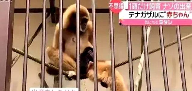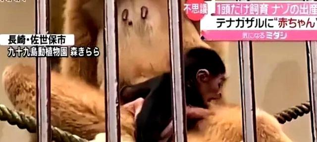 日本长崎县九十九岛动物园里那只叫莫莫的长臂猿姑娘,愣是在独居的铁笼子里憋了五年,冷不丁就抱上了个黑毛小崽子。