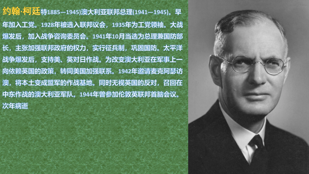 1941年12月27日,澳大利亚总理、工党领袖约翰·柯廷宣布:“澳大利亚现在要寄希望于美国,无须再为我们与英国的传统联系或血缘关系感到痛苦。”丘吉尔勃然大怒,他当时就称澳大利亚人“本来就是糟糕的货源”(指澳大利亚原本是英国罪犯的流放地)。尽管如此,柯廷的声明也正式标志着“澳大利亚开始从英国这个从未有效保护她的轨道上离开,转向美国”,而美国很快就接纳了她。