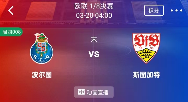 周四 008 欧罗巴:波尔图VS斯图加特
