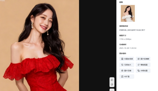 创意替换:把模特身上穿的白裙子改成红裙子;