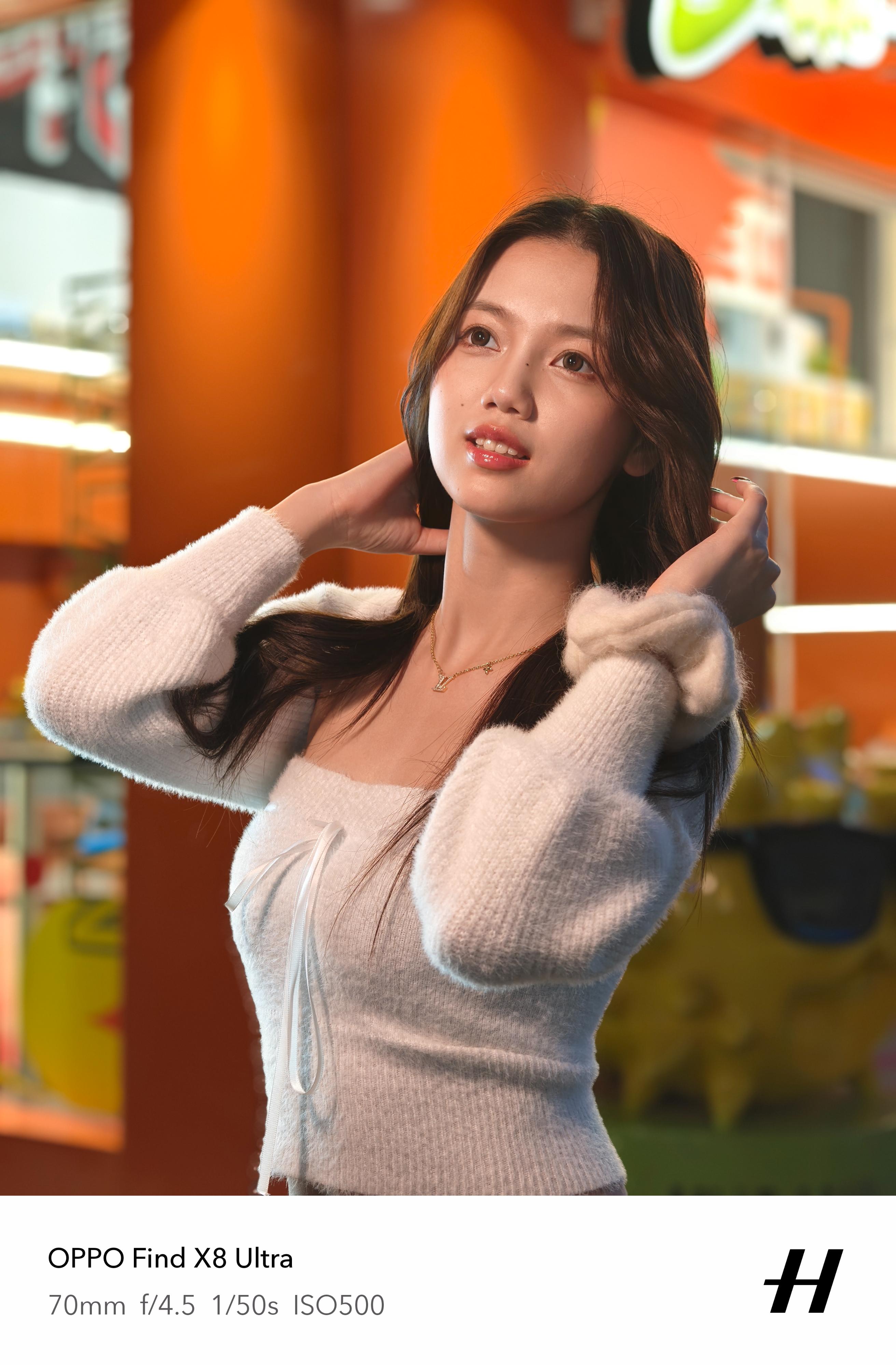 拍照是这次的重头戏,Find X8 Ultra的五颗镜头覆盖了15mm到300mm全焦段,人像模式从1X到6X都能随便调焦,随手一拍就是大片感。尤其是70mm焦段,夜景人像特别强,进光量多了150%,拍出来的肤色自然又真实。超晶态蓝玻璃技术也很给力,复杂光线下不会被环境光染色,人物脸部干净有气血感,还带点眼神光,看着就灵动。发丝虚化也做得细致,放大看头发边缘过渡自然,没那种生硬的涂抹感。135mm长焦拍远景也清晰,F3.1大光圈加5000万像素大底,画质完全不虚。跟其他Ultra比,它在夜景人像上的调校更贴近真实,不像有些机型偏艳或者失真,实用性拉满。