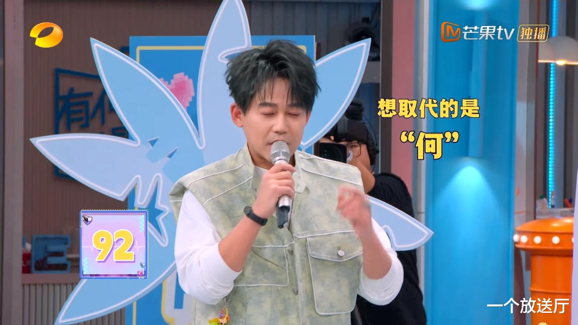 董子健停顿了几秒,再配上节目组放的刘昊然唱歌的音乐。