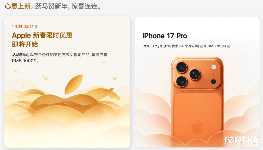 来了来了,苹果中国今天官宣了新年促销活动,官网部分商品限时降价,最高便宜1000块钱!苹果还为新春活动重新设计了一个马年