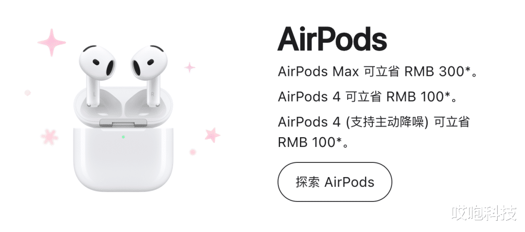 耳机方面,仅有AirPods Max减价 300 块,AirPods 4 降价 100 块,新款 AirPods Pro 不参与活动。