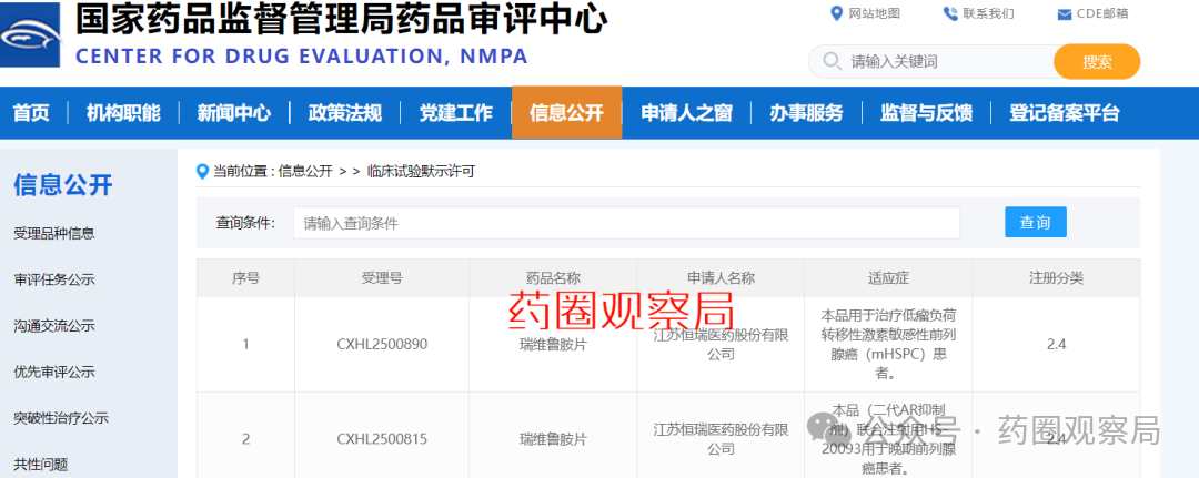 10天前,瑞维鲁胺片还获批开展联合注射用HS-20093用于前列腺癌的临床试验。