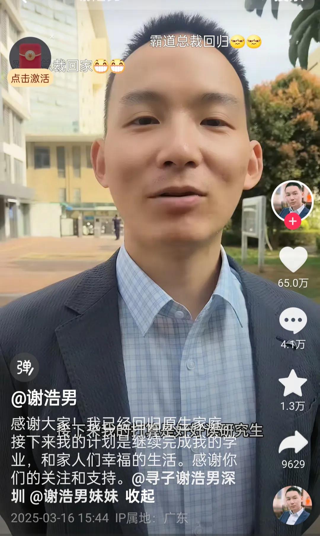 也是在3月16号同一天,谢浩男注册了自己的账号,发布了第一条视频。