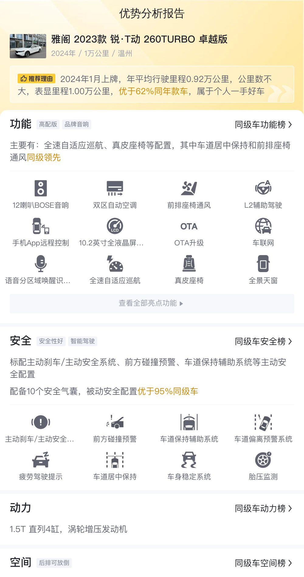 首先,我们得承认,这辆雅阁的配置确实很吸引人。在这个价位,能拥有全景天窗、真皮座椅、前排座椅通风、L2级驾驶辅助、全速自适应巡航等一系列配置,确实很有竞争力。尤其是在炎炎夏日,座椅通风简直就是续命神器。而且,这些智能安全配置也能大大提升驾驶的安全性,对于新手司机来说更是非常友好。但问题是,这些配置真的值6万块的差价吗?我们不妨算一笔账,看看新车落地价和这辆二手车的价格差究竟有多少,然后再仔细衡量一下这些配置的价值,看看是否真的物超所值。