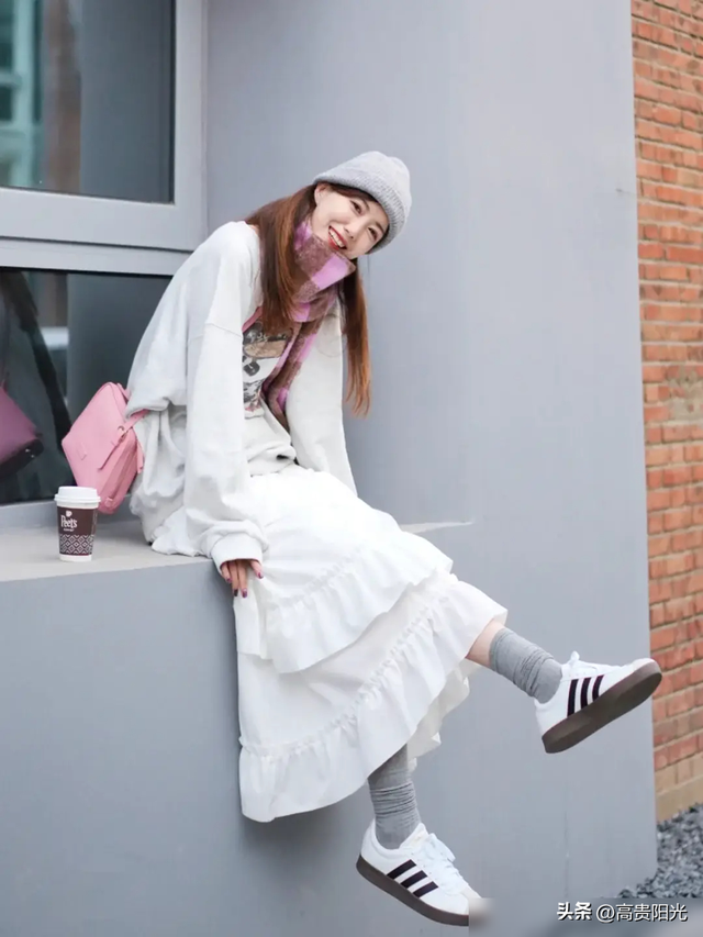 20+的姑娘更不用说,青春就是要“怎么开心怎么来”。短款蛋糕裙配德训鞋,露一截腿,活泼得像春天的风;牛仔开叉裙搭白色德训鞋,衬衫一塞,既复古又带点小酷;碎花裙挑条主色和德训鞋拼色块呼应,细节里藏着小心机,随便一拍都是ins风。小个子也别慌,短款半身裙+德训鞋直接拉腿长,比穿高跟鞋舒服十倍。