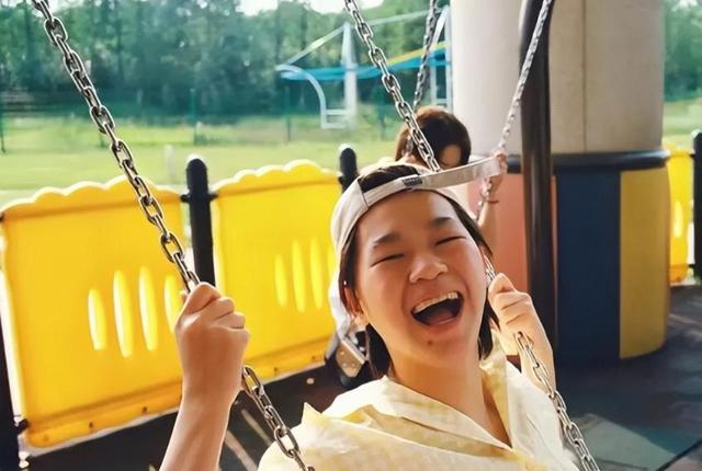 照片中全红婵露出了久违的笑容,她坐在秋千上肆意荡漾着。