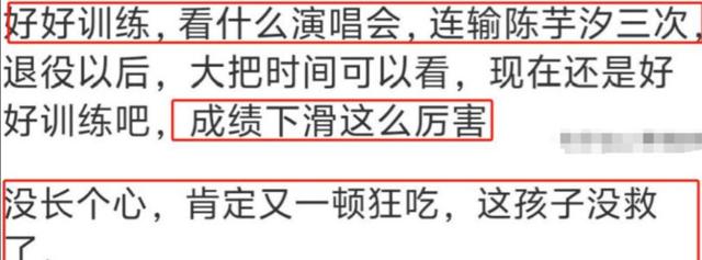 并且指责:好好训练,看什么演唱会,已经连输陈芋汐了三次,成绩下滑这么厉害。