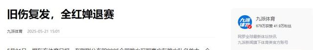 九派新闻:(旧伤复发,全红婵退赛2025.05.21)
