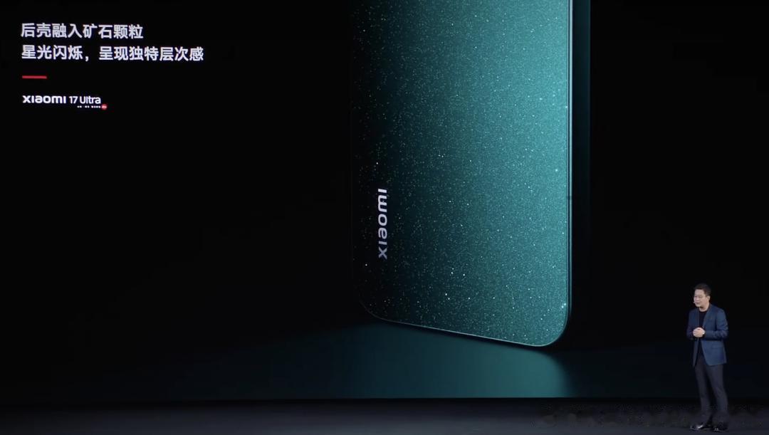 Xiaomi 17 Ultra 共有四款配色,白色版细腻的磨砂肌理呈现出珍珠般的高级质感;黑色版 Deco 处红色大师镜头环与机身形成鲜明反衬,尽显视觉张力;冷烟紫延续了 Xiaomi 17 系列低饱和莫兰迪色系,带来典雅之感;星空绿背板内置大小不一的矿石颗粒,呈现出璀璨星光般层次感,仿佛将深邃星空握于手心。