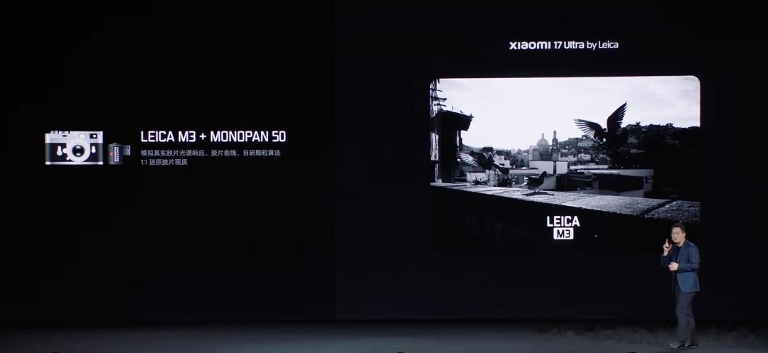 Xiaomi 17 Ultra by Leica 独占的「徕卡一瞬」以全新的技术路径,在手机中重塑了两款传奇徕卡相机的经典画质。在「Leica M9」风格中,小米基于徕卡 M9 实机采集的数十万张照片,训练了「RAW-to-RGB」Style Transfer 模型,不止可以还原 M9 浓郁的影调和色彩,还能模仿相机光学柔和的细节质感。而「Leica M3」风格,对 Leica MONOPAN 50 胶片的色彩响应、影调、颗粒进行了数字建模,呈现出普通滤镜远不能及的真实黑白胶片画质表现。