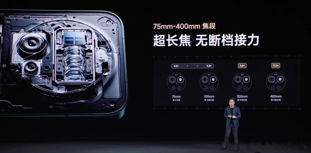 「徕卡 2 亿像素真光学变焦」潜望长焦镜头,解决了行业中,中长焦端画质不可兼得的构图局限,开启了移动影像的光学变焦时代。它拥有着手机行业最精密复杂的内部结构,采用 8 镜片、3 镜群的设计,其中第二、三群可在镜组内独立位移,分别改变焦距和对焦点,实现等效焦距 75-100mm 范围内的光学变焦,做到其中任意焦段都能完整利用 1/1.4 英寸超大尺寸传感器、实现 2 亿像素直出。