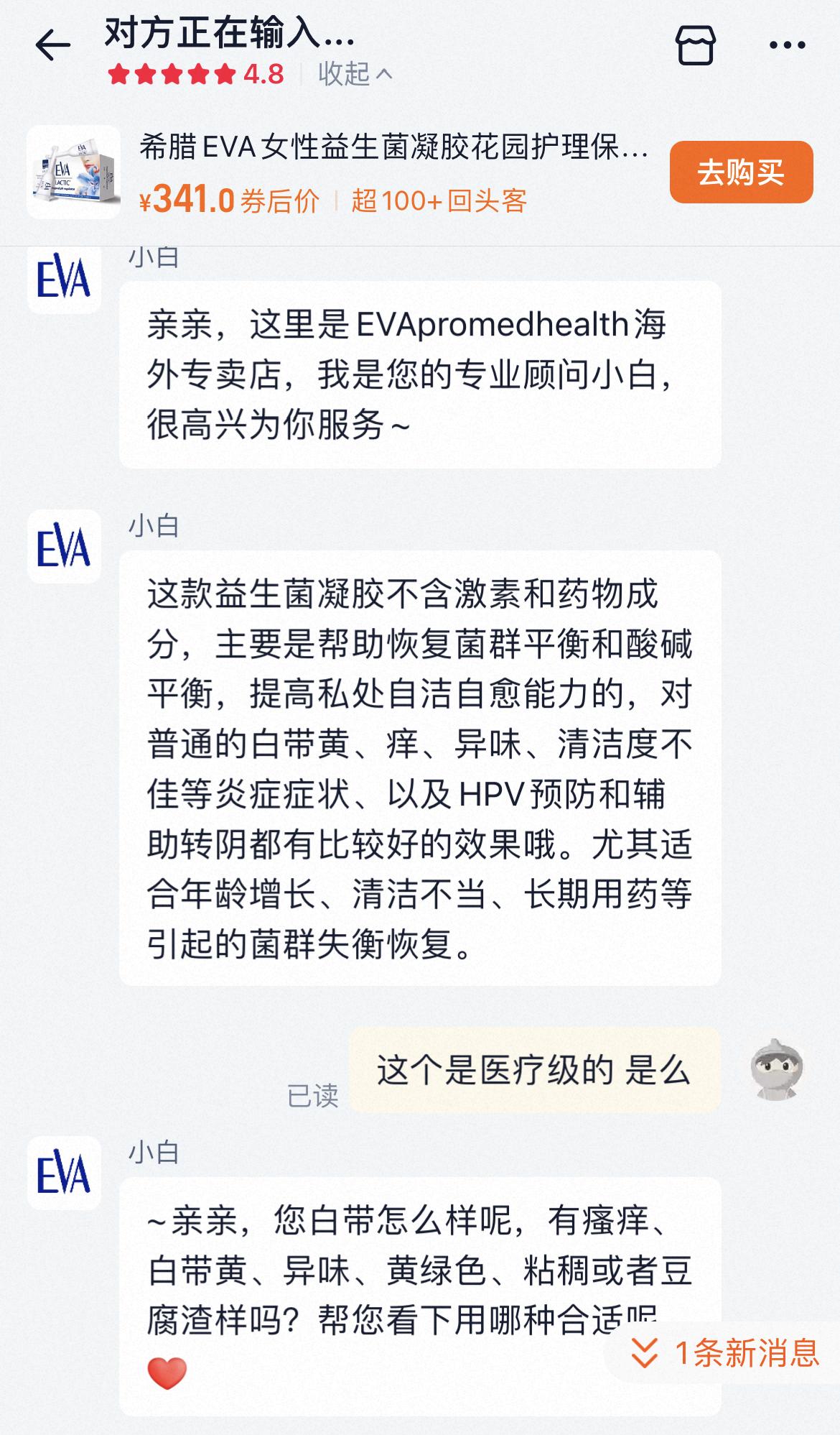 EVApromedhealth海外专卖店客服介绍希腊EVA女性益生菌凝胶对部分炎症症状及HPV预防和辅助转阴有效。