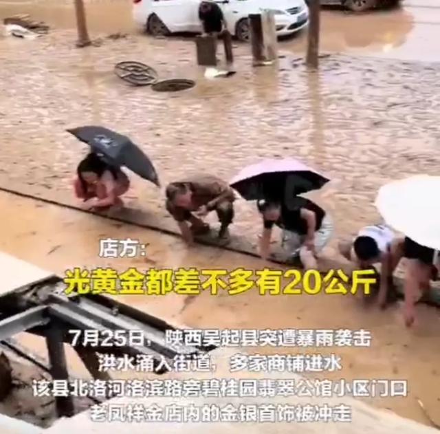 听说了吗,近日陕西有个县城的老凤祥金店亏惨了,20公斤金银首饰被洪水冲走了,保险柜也不知道冲到哪个旮瘩里去了,损失上千万!