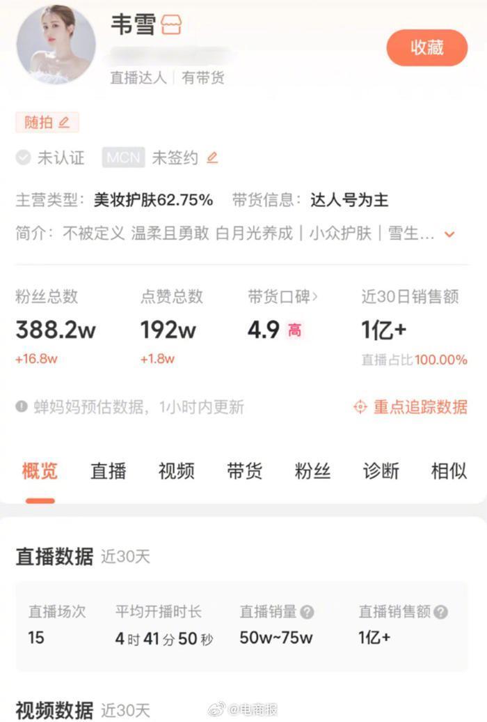 网红韦雪赚翻了她真的好人间清醒,直播1分钟赚2万,30天带货1亿+
