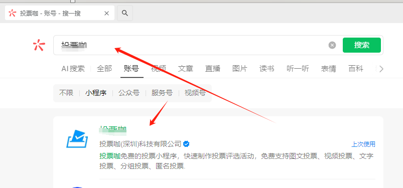 在微信首页下拉,进入小程序搜索框,输入匿名投票工具名称,如投票咖或票选助手,点击进入小程序主页面。