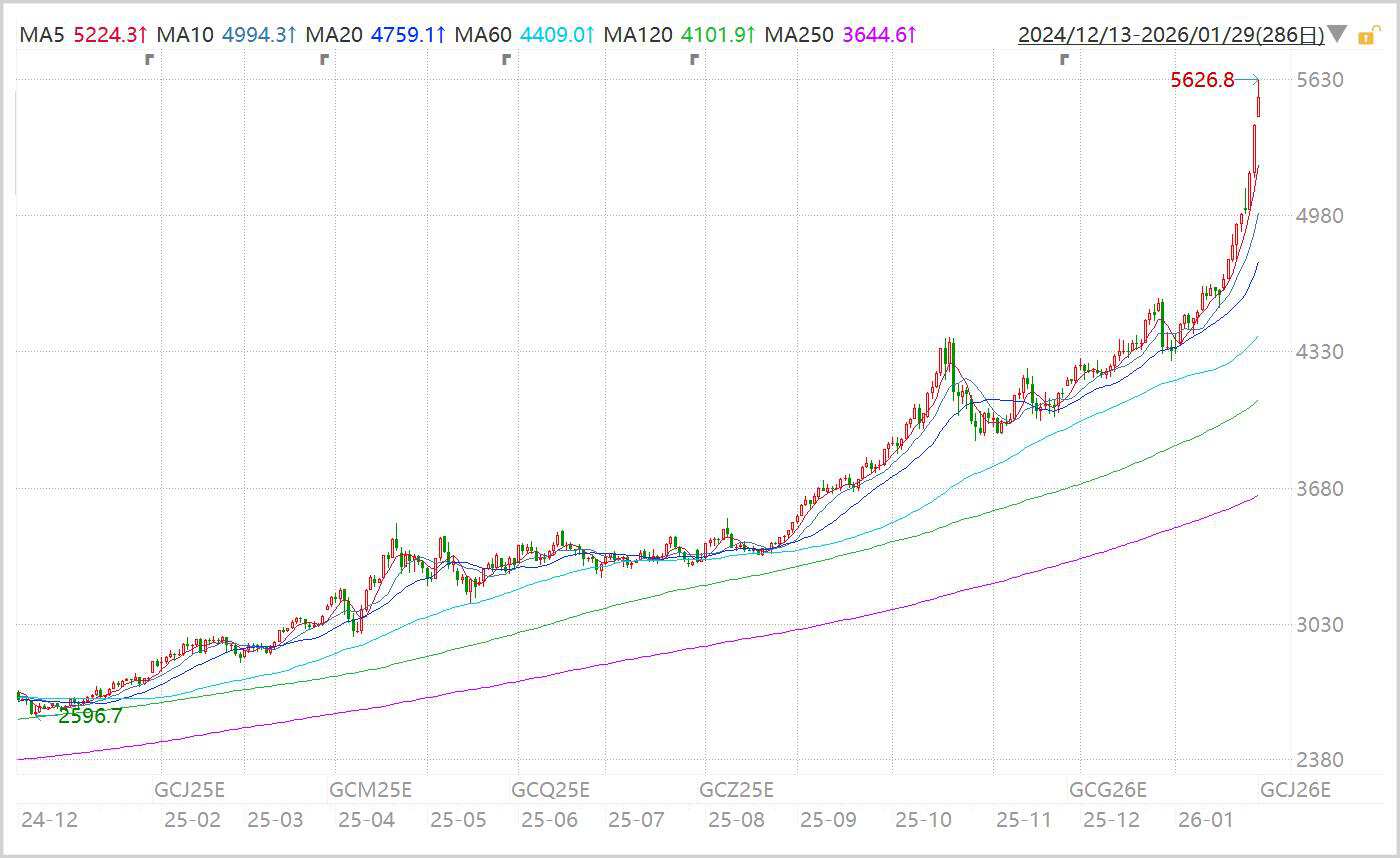 2026年开年,黄金再度疯狂,不足1个月时间大涨近30%,现有价格已突破5550美元/盎司。