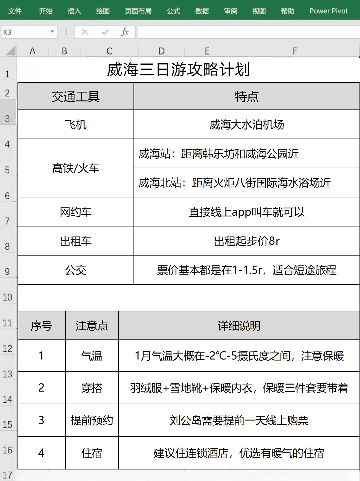 准备元旦去威海游玩了,男朋友😴熬夜把威海的游玩攻略给做出来了,行程安排、美食、住宿交通建议、注意事项,赶快抄作业✍️