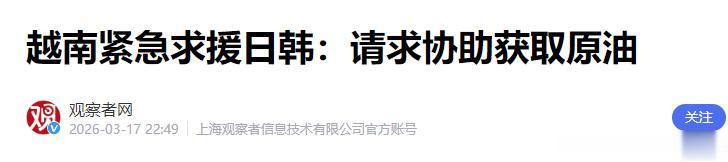 加油站限流、企业停工、民众出行受限,越南紧急向日韩求援,却对近在咫尺的中国避而不谈。这背后,藏着怎样的深层考量?