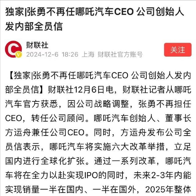 张勇的辞职像一根导火索,点燃了外界对哪吒汽车未来发展的疑虑。随着他不再担任CEO而成为顾问的消息传出,舆论的声音更加嘈杂。张勇在卸任之前做了许多努力,试图通过兼任多个高管职位来拯救公司,但这些举措似乎未能扭转颓势。人们开始猜测,是否是内部管理出现了问题,导致张勇选择了“跑路”以求自保?
