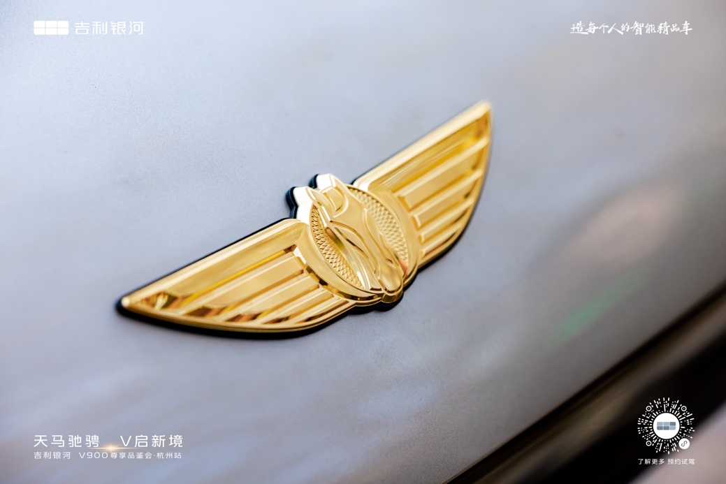 银河V900由吉利英国设计团队倾力打造,以“陆地游艇”为设计灵感,将东方礼序与全球视野完美融合,铸就一眼可辨的豪华气场。整车采用V系列专属标识体系,Ultra版车型搭载24K曜金天马车标与典藏曜世徽标,高定品质彰显顶奢格调。