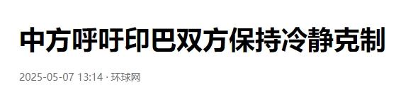 环球网 2025-05-07 13:14 中方呼吁印巴双方保持冷静克制