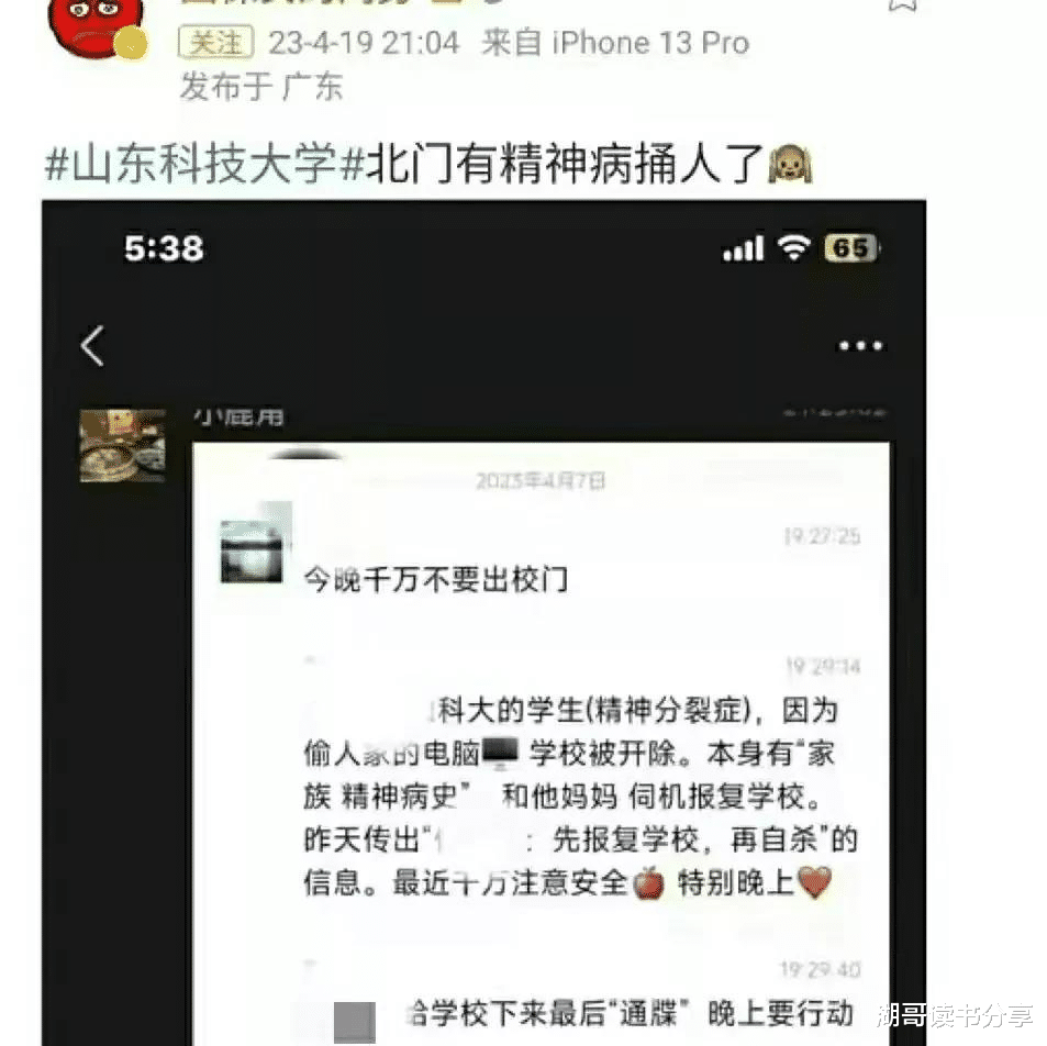 据知情者爆料,付某峰在离开学校时,曾经放言要报复。