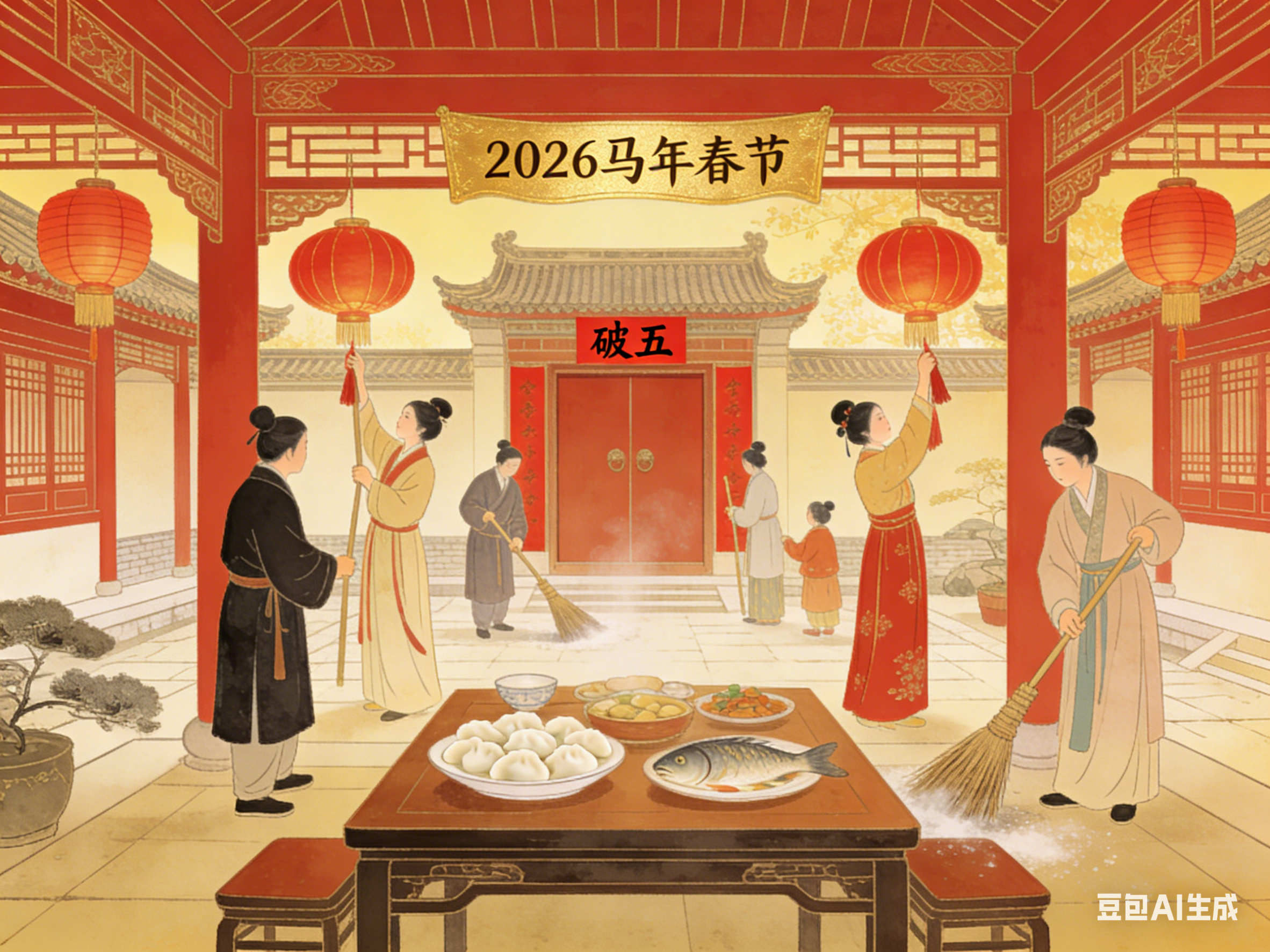 初五最广为人知的称呼是“破五”,“破”字是核心,涵盖三层关键含义,贯穿当日所有习俗。