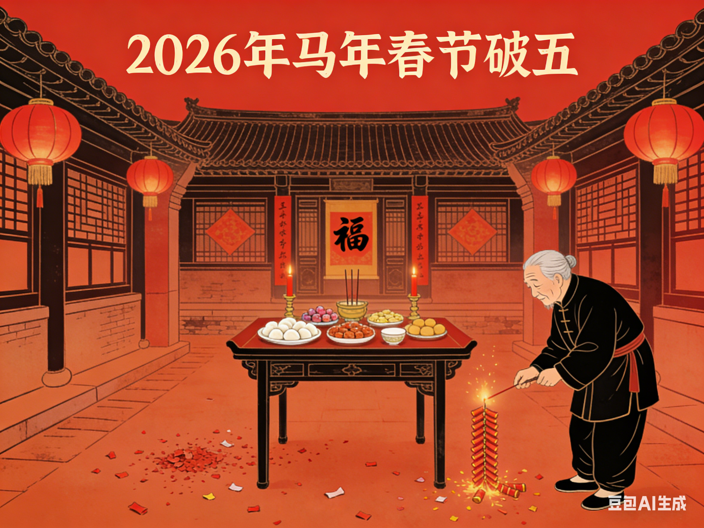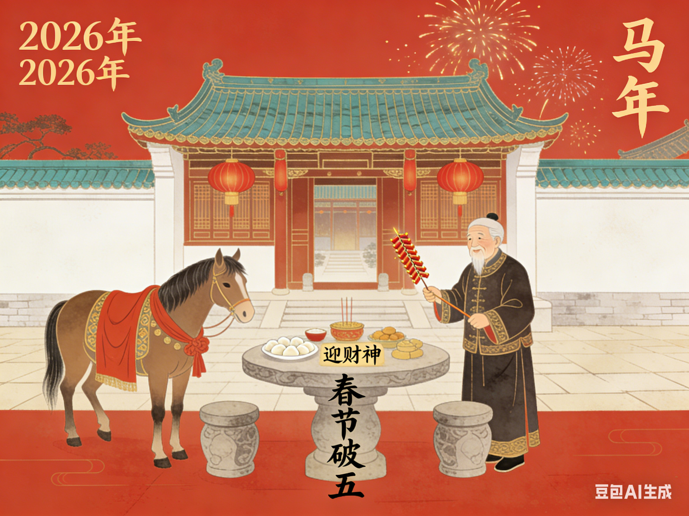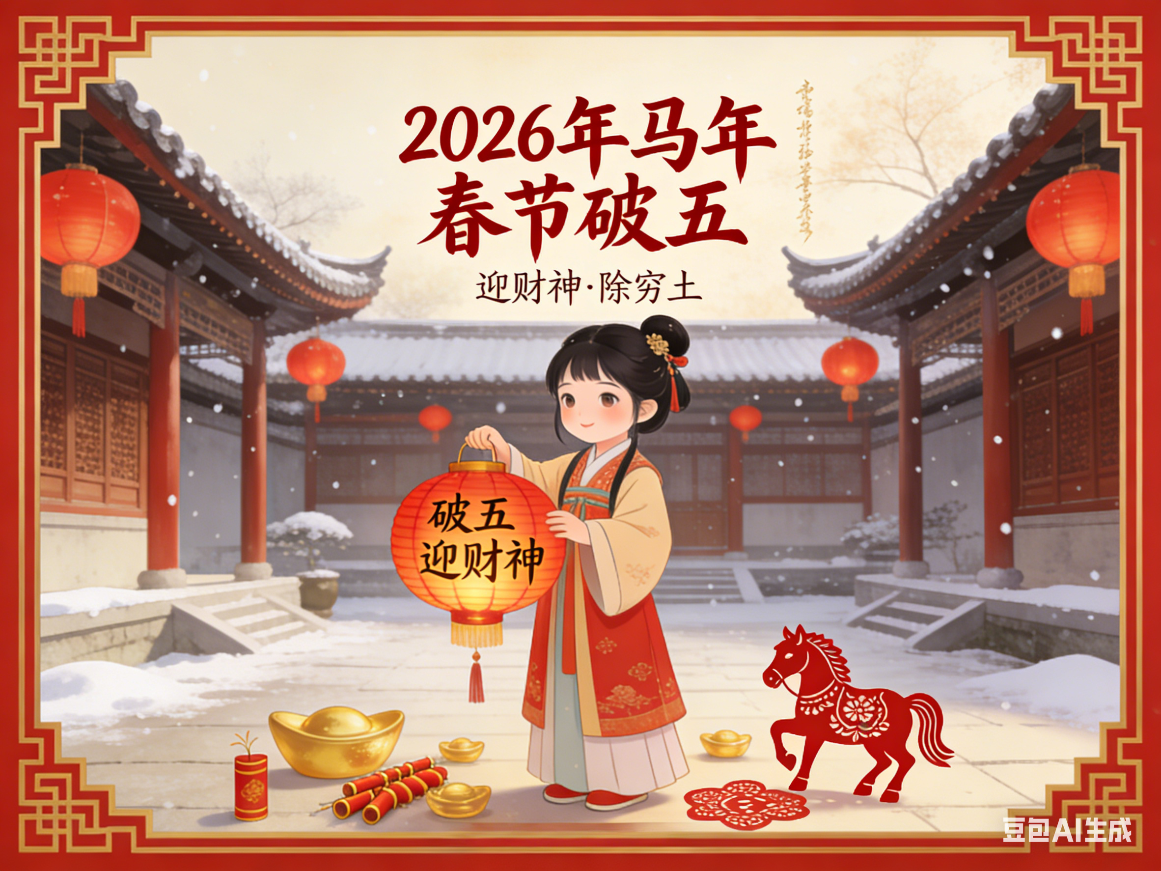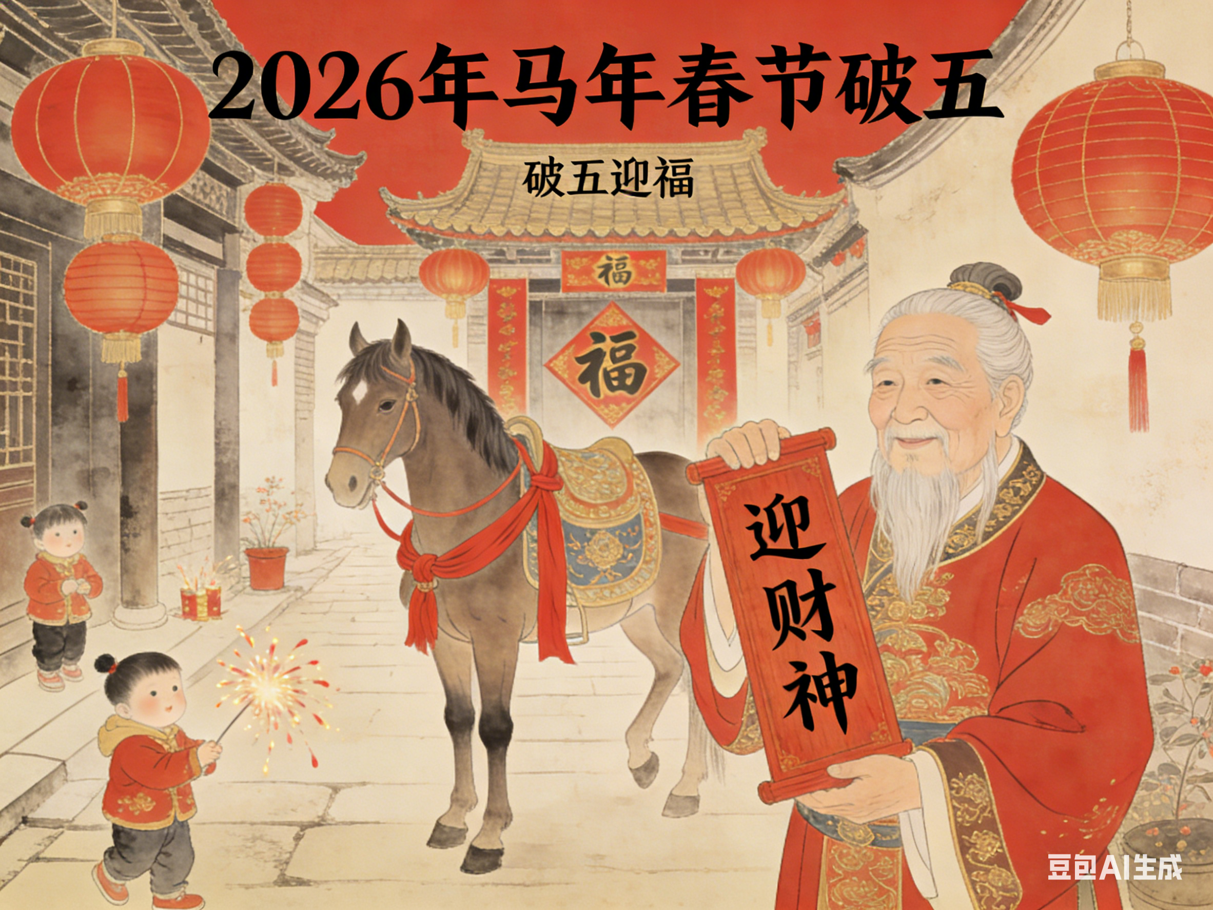 正月初五,俗称破五、迎财日、送穷日,亦有“隔五”“五穷日”之称,是春节期间承前启后的重要日子。它上承除夕至初四的年节喜庆,下启年后正常生活与劳作,既是年俗的集中体现日,也是古人寄托祛邪避灾、招财纳福心愿的核心节点。