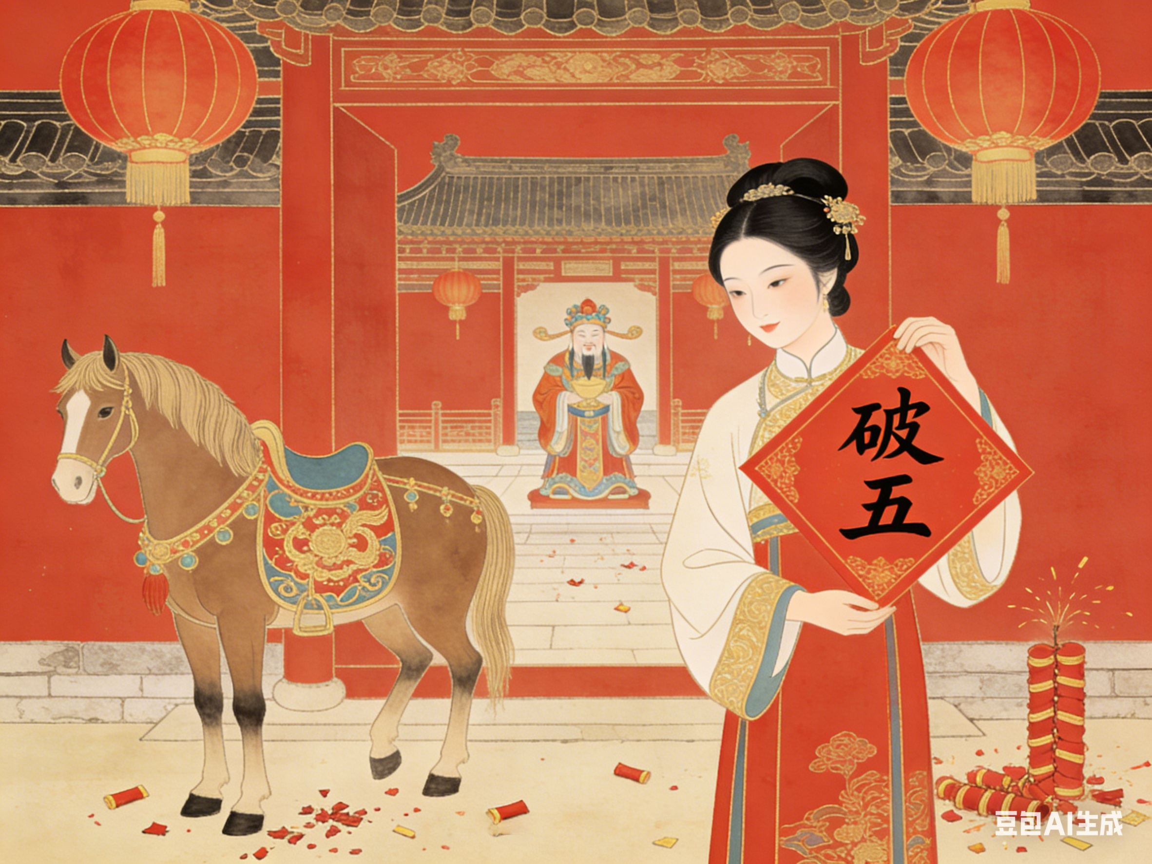 第三层是破除旧岁不顺。“破”有“破而后立”之意,初五的“破”,是打破旧岁的烦恼、阻碍与霉运,以全新的状态迎接新一年的生机与希望,寓意“破除旧障,万象更新”。