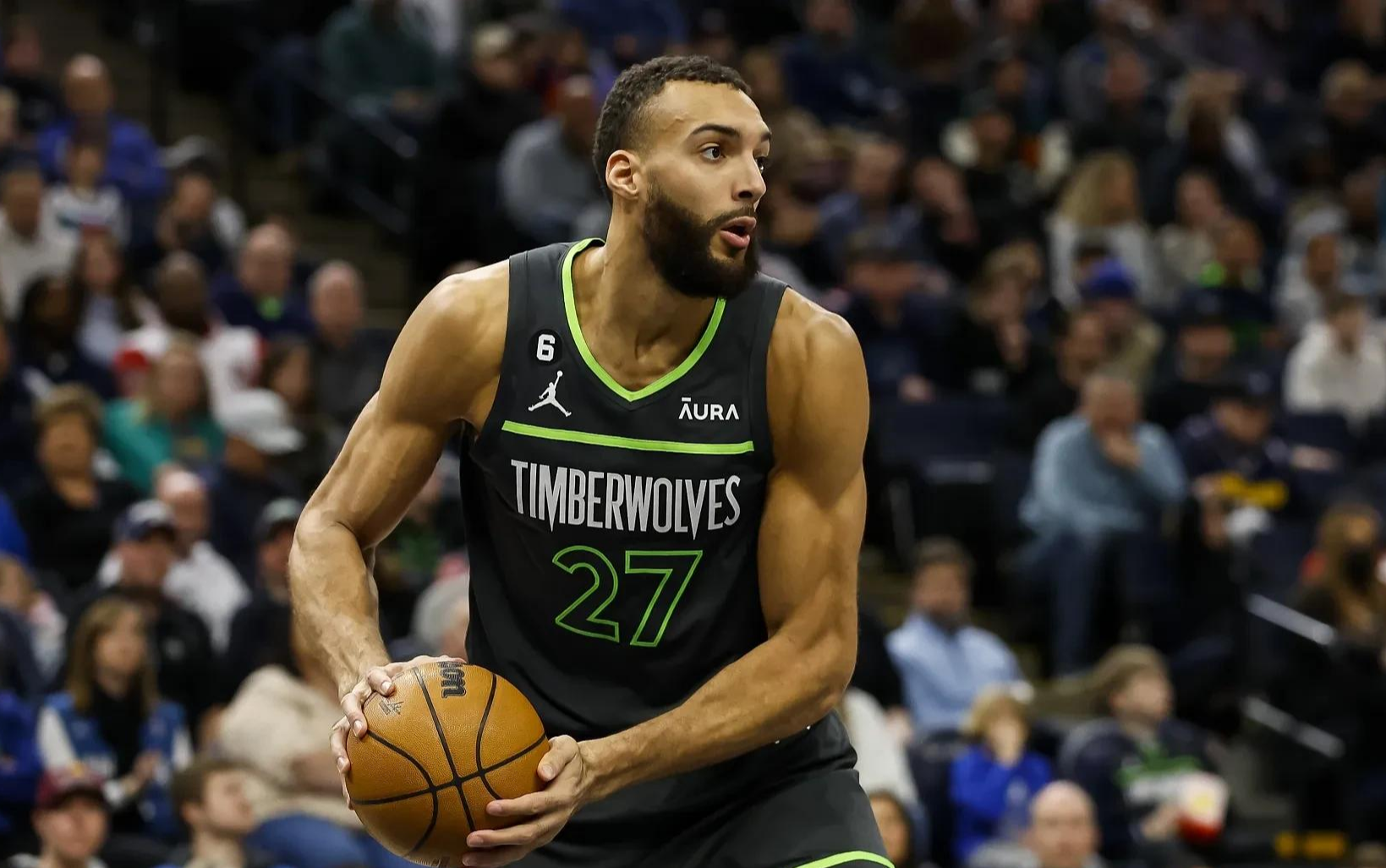 森林狼首发:麦克丹尼尔斯、兰德尔、戈贝尔、爱德华兹、康利。