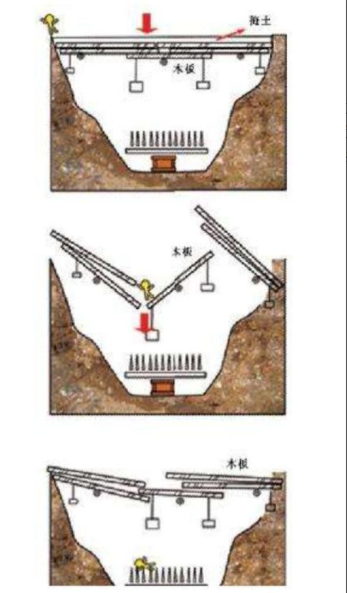 连环翻板,原理并不复杂,却十分有效。在地宫通道的关键位置,设置一块块可翻转的木板。