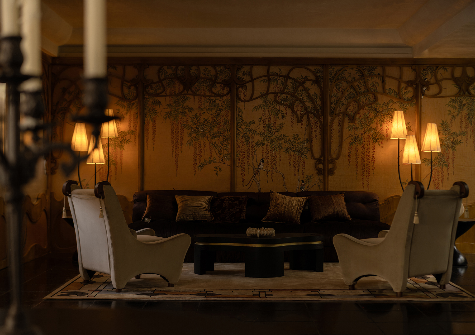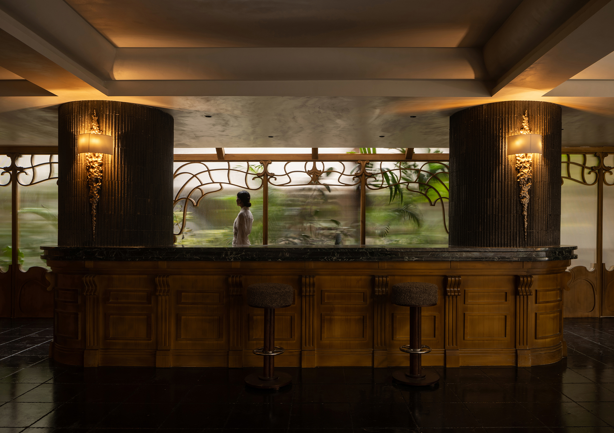 室内的整体的设计从内庭花园引发思考,风格上更浓郁且有机,硬装装饰上从植物提取元素,在大厅用木头还原了植物生长的枝桠。内庭的植物咖啡厅通过玻璃分割,朦胧的内庭景观和植物状态的枝桠结合在一起,产生了很好的有机结合。