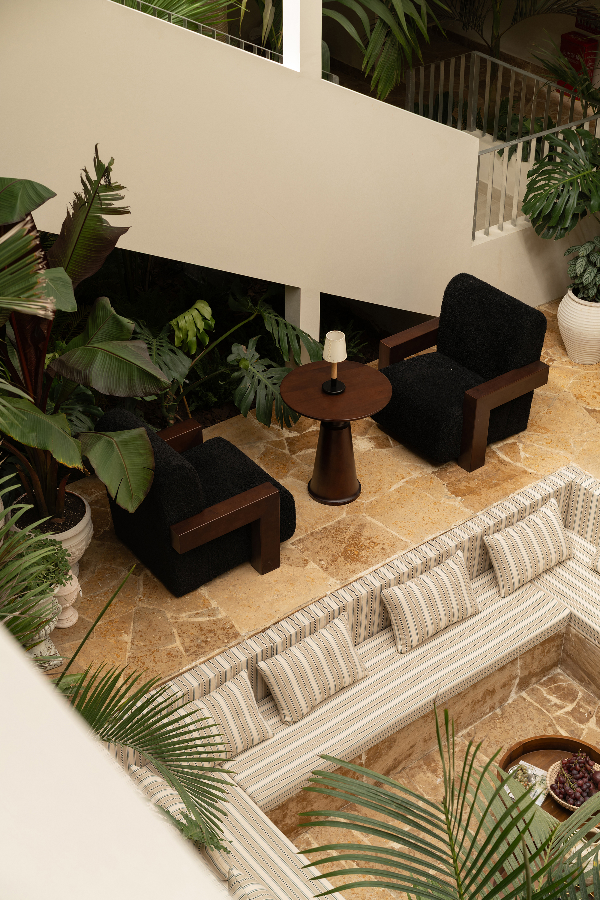 艺加设计和您一起赏析香格里拉酒店设计,其外部环境无法给到项目加持,设计从建筑的内部思考,在建筑的内部打造一个温室的花房,四季可以保持植物充盈的状态,将去房间的楼梯动线拆分做成了可游走的观景路线,增加内庭的观赏性。