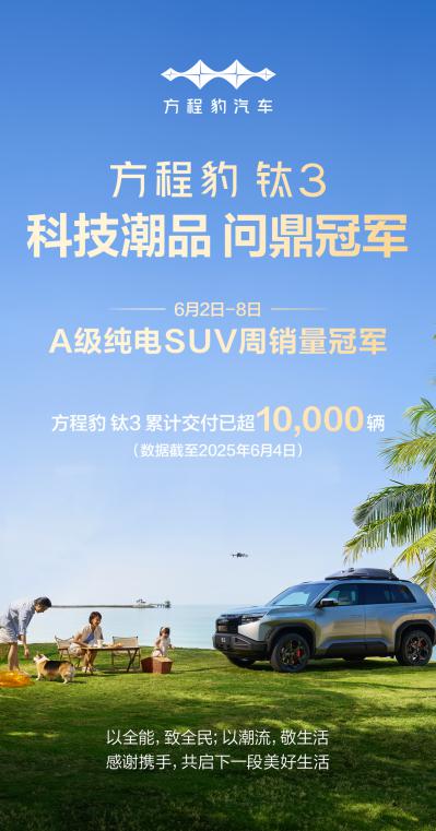 讨论其成功的关键,产品定位无疑是不可忽视的一环。近年来,消费者对新能源汽车的期待不断演变,他们不仅要求续航和性能,更加关注驾乘的整体体验。方程豹正是抓住了这一点,其车型如钛3和豹5都在设计与功能上实现了突破。钛3一举成为A级纯电SUV市场的销量冠军,单周销量达到三千三百七十一辆,累计交付量也早已突破一万。这一数据无不在显示其强大的市场号召力。